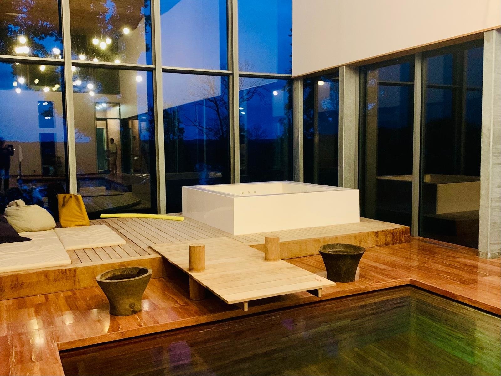 - 1 chambre de 40 m2 avec sa salle de bain donnant sur la piscine intérieure