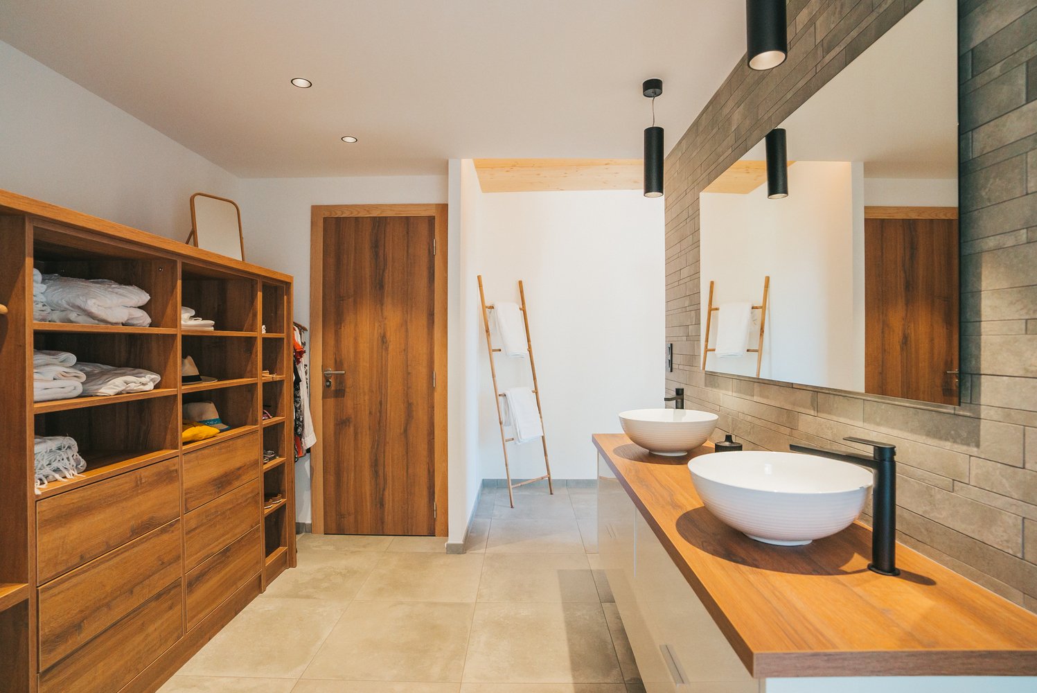 - Suite parentale avec coin bureau, dressing, douche à l'italienne spacieuse, une double vasque avec rangements et un wc privatif.