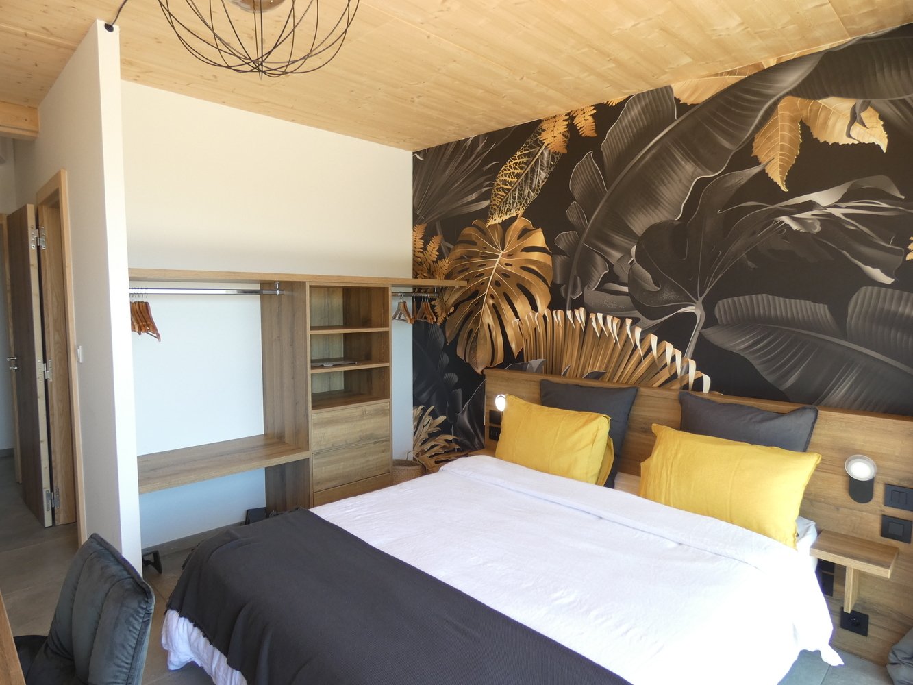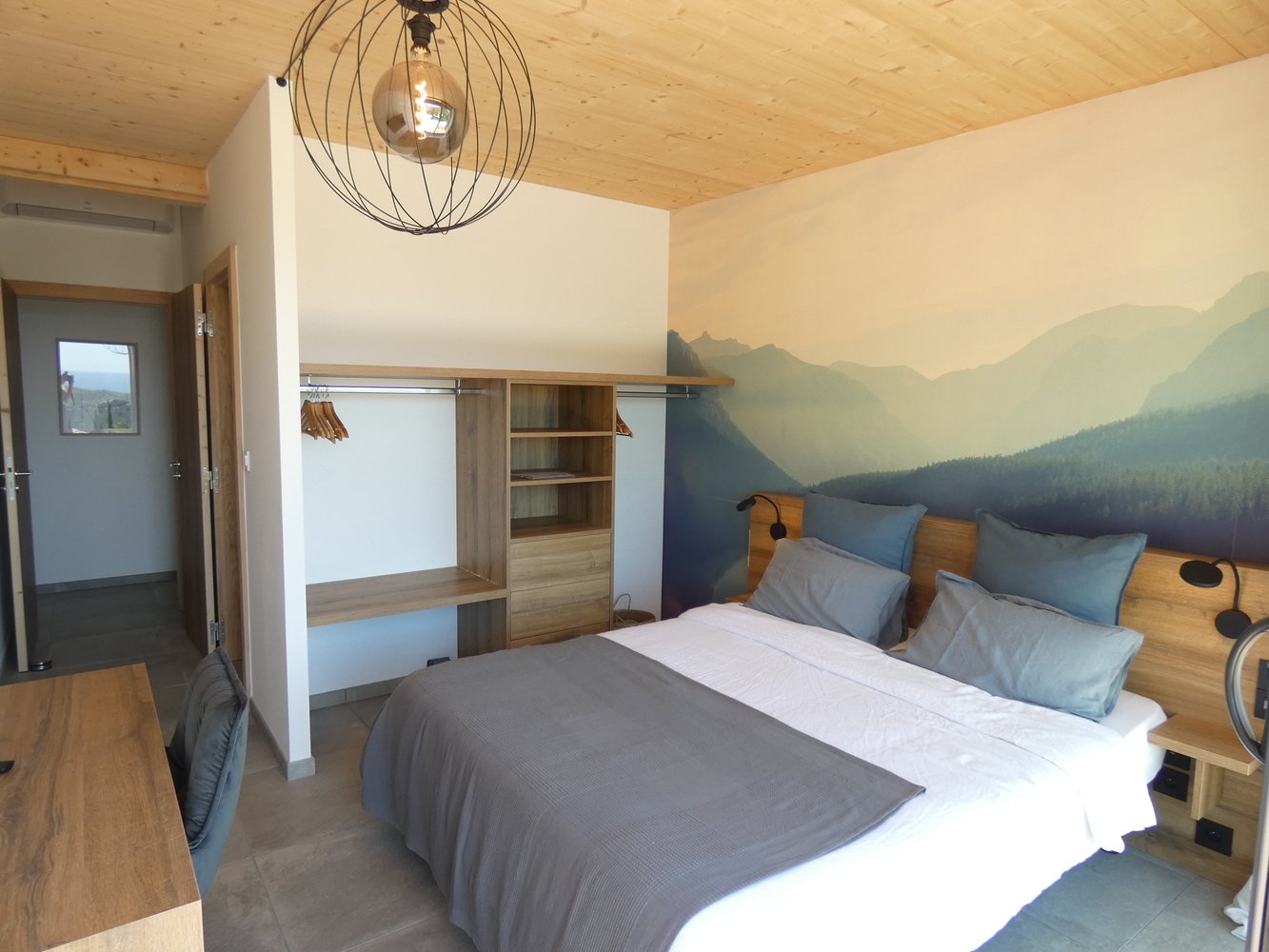 - 4 suites avec salles d'eau, balcons donnant vue sur la piscine et la montagne, coins bureaux, dressings.