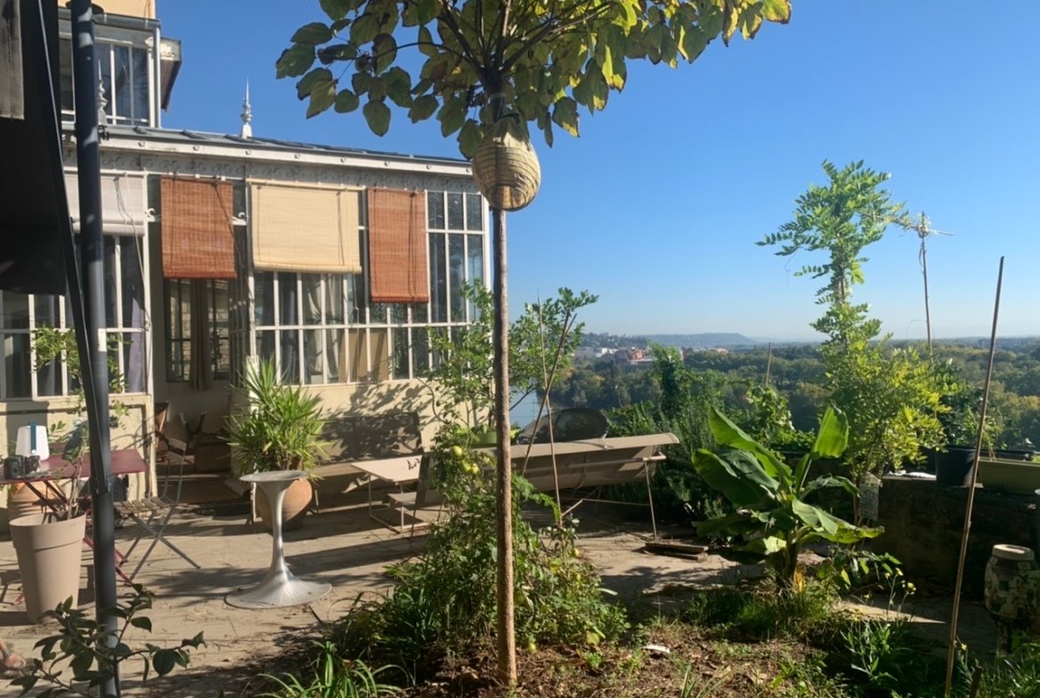 Maison d'artiste située dans le cœur historique d'une ville Française, avec une très grande verrière authentique de 1902.
