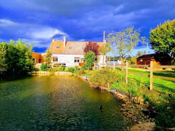 Extérieur : – un grand étang avec des carpes, oies adultes, canards...
