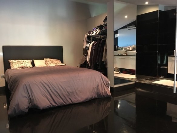 Maison de plain pied, avec : Intérieur : – hall d’entrée avec...