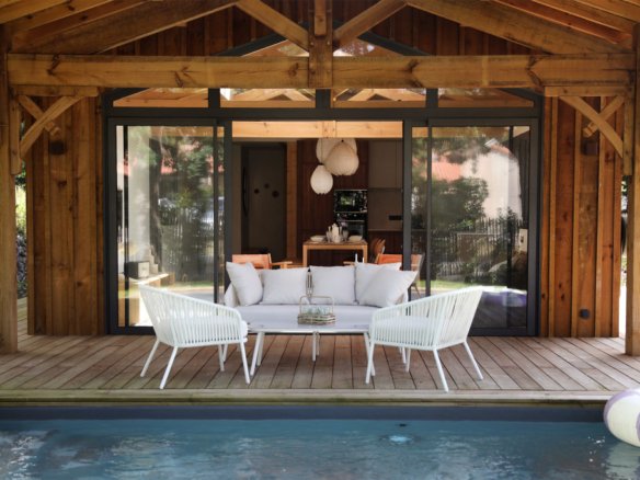 Maison en bois avec piscine dans les landes