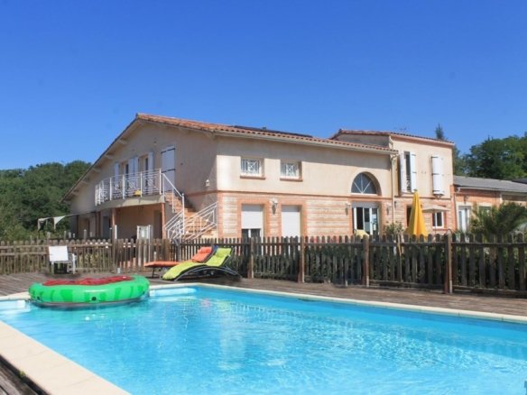 Maison villageoise et maison avec piscine intérieur sur un terrain