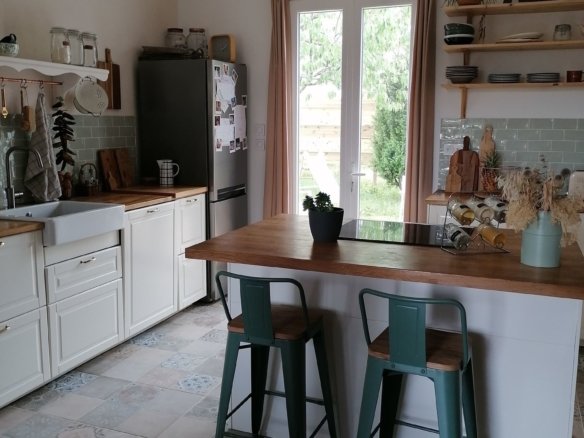 Pièce de vie de 50 m² avec cuisine équipée, salle de bain...