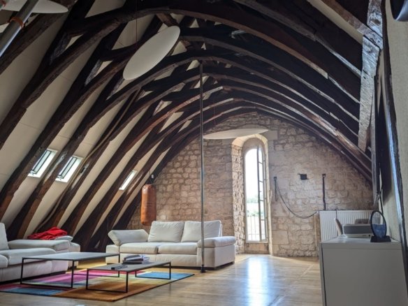 Ancien atelier des compagnons de France, l appartement comporte un salon de...