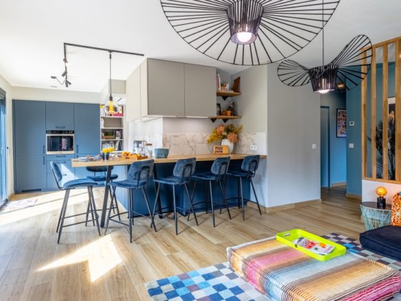 Appartement Parisien avec un mobilier au style mid-century design, agrémenté d’une vaste...