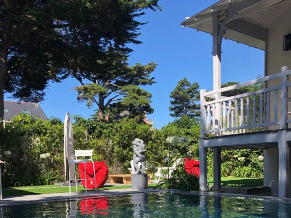 Maison d’architecte située en bord de mer constitué d’une grande verrière centrale....