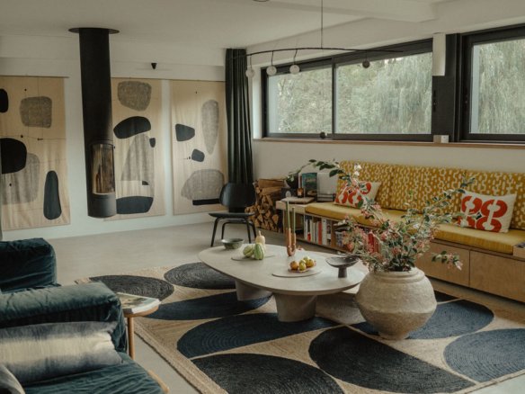 Maison typique peu meublée au milieu des bois avec une terrasse surplombant...