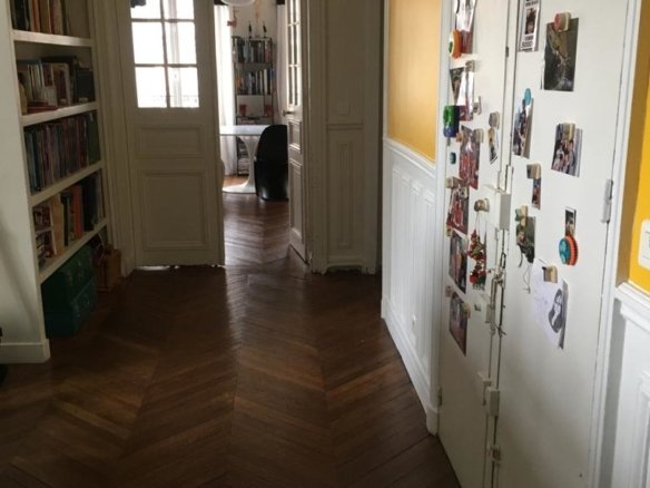 Appartement haussmannien avec : – couloir d’entrée – double séjour avec cuisine...